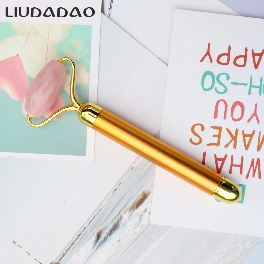 .image of Jade Roller Electric Metal Slimming For Face Eye Forehead Rose Quartz Wrinkle Removal Massager Rela